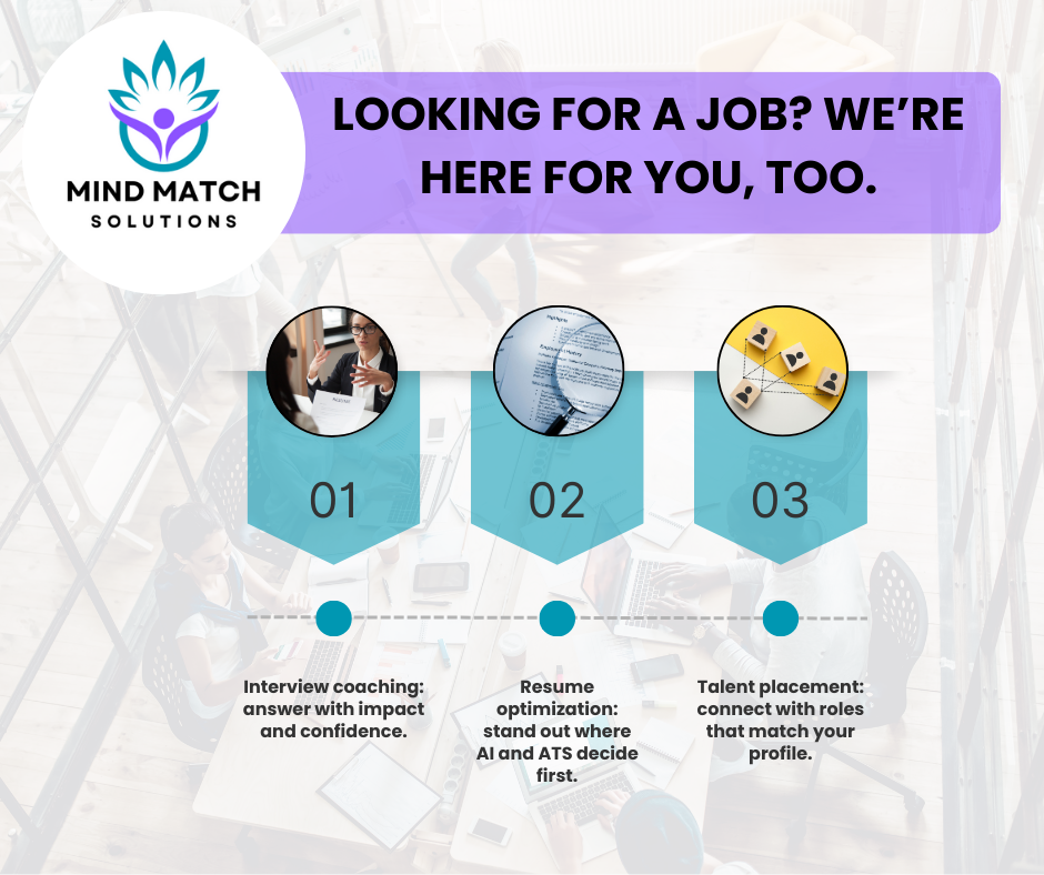 Many companies face critical challenges in managing their talent: At Mind Match Solutions, we understand that a company's success is directly linked to the experience and well-being of its employees from day one.